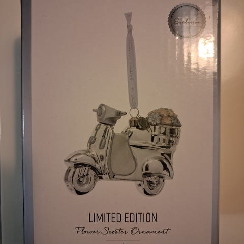 Myydään neljä kappaletta lasisia Riviera Maison kuusenkoristeita. Tähdenmuotoiset koristeet hopeisilla tähtipaljeteilla. Edessä teksti "little sparkle". Hyvässä kunnossa.
