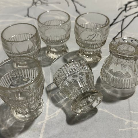 Koristeellinen lasipullo ja snapsilasit 6 kpl.