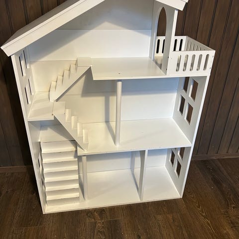 Barbie nukkekoti ja kalusteet. Sisältää: kaksikerroksisen talon, useita huonekaluja kuten sängyn, sohvan, tuoleja ja miniatyyri ruokia, keittiö kalusteita ja hygienia tarvikkeita. Nukkekoti on pääosin vaaleanpunainen ja valkoinen. Mukana on myös kaksi nukkea.