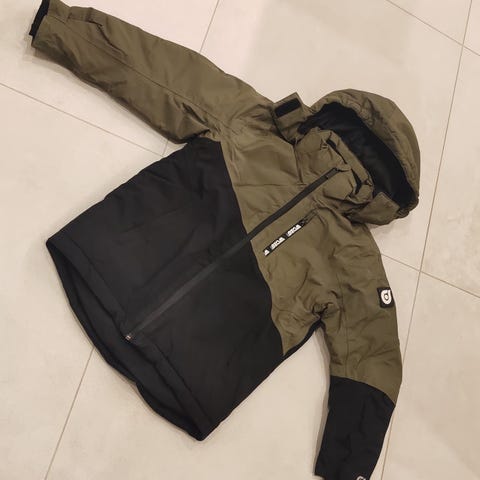 Erittäin hyväkuntoinen takki. Mustan värinen, ja vuori sekä vetoketju oranssi. Kevyesti topattu.