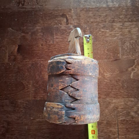 Käsityönä tehty, käyttämätön, korkeus 20 cm. sisällä muovipullo.