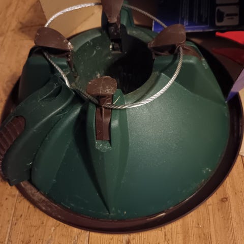 Hyvässä kunnossa oleva joulukuusen jalka. Painava. Tummanvihreä.