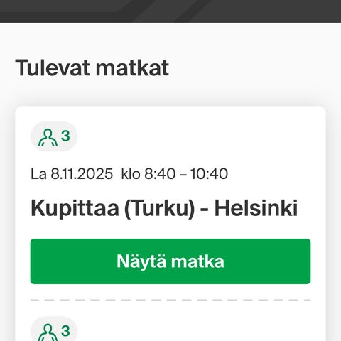 Helsinki–Kupittaa 2 junalippua 21.1.2026