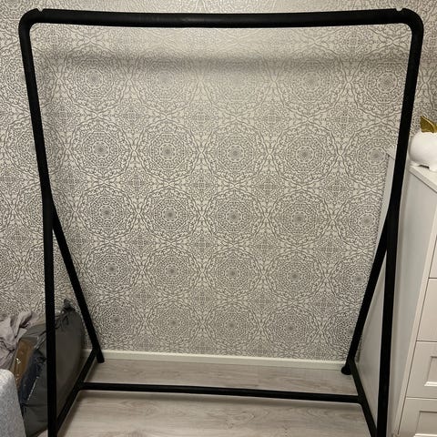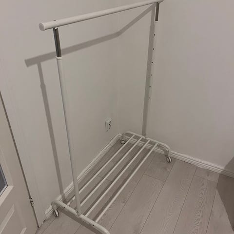 Myydään toimiva ja tyylikäs vaaterekki. Toisessa päässä pyörät jotka helpottavat liikuttelua. Mukana tulee ripustettava hyllykkö. Kunto hyvä ja siisti, ei vikoja.