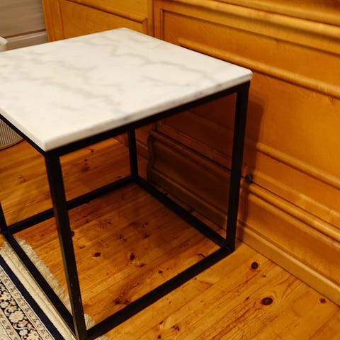 Marmoripöytä mustilla metallijaloilla 50cm*50cm korkeus 53cm