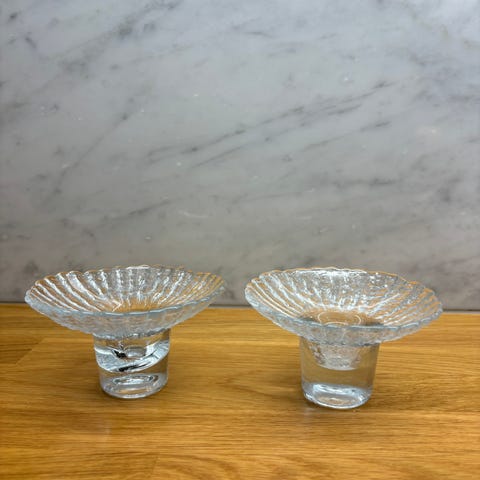 4 kaunista lasista pientä kynttilänjalkaa etsii uutta kotia.