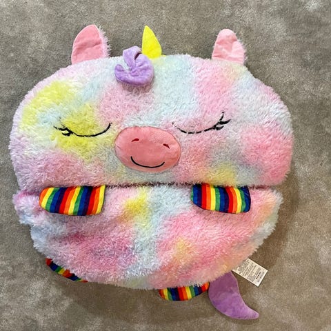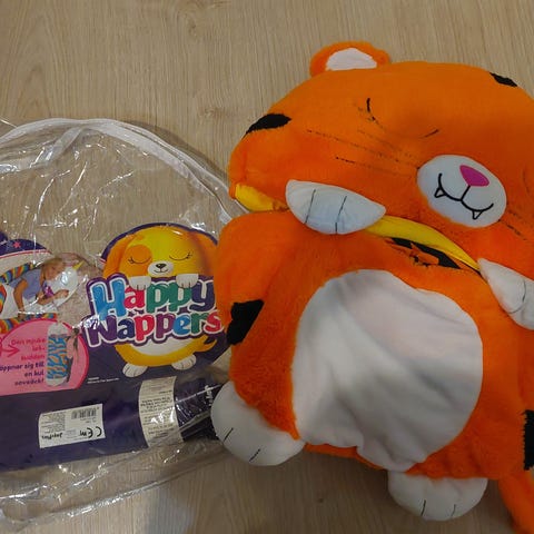 Lasten suloinen makuupussi jonka saa napeilla tyynyksi. Koko S, ollut käytössä 5-6 -vuotiaalla.