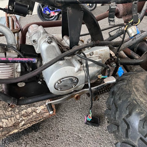 Tosta ois tommonen 110 mönkijä 50 rungolla. Mönkijässä on siis kiinni 110 trapperin moottori, mutta 50 saa mukaa jossa vaihteisto rattaat rikki. 50 puuttuu joitaki osia jotka on nyt tossa 110 kuten vauhtis ja staattori.