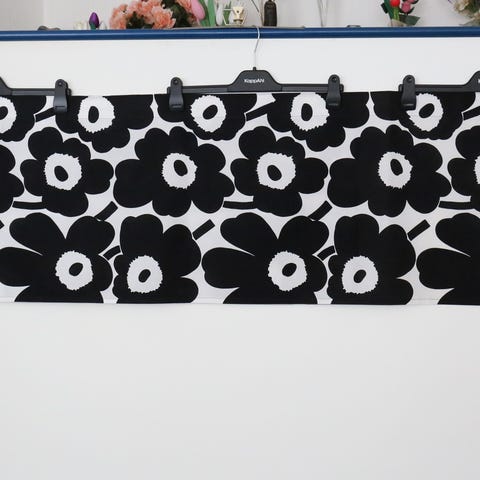 Kaunis vaalea valoisa Unikko kuosin verhokappa 4,5cm erillisellä tankokujanauhalla. Tähän sopii myös koukku- tai nipsu kiinnityskin. Koko tällä 240x45cm. Hinta 53e haku. Postituskin onnistuu kyllä.