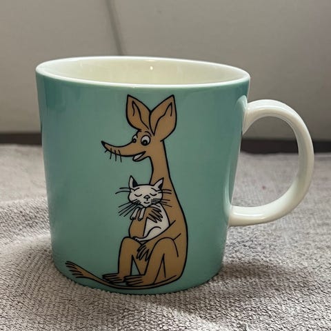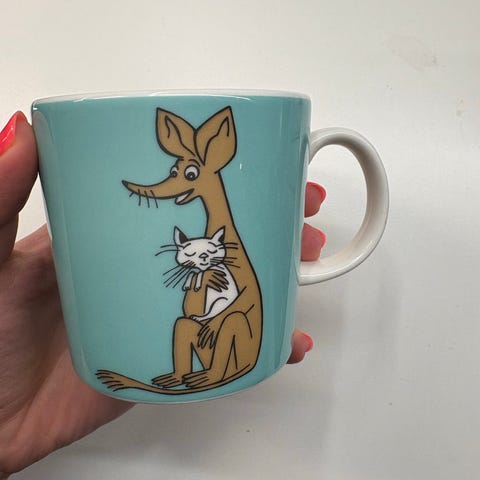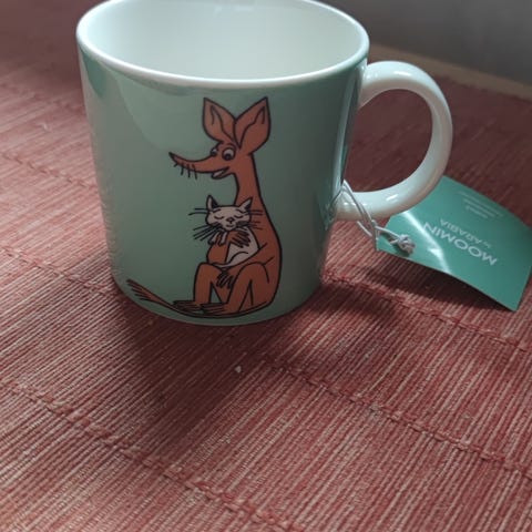Arabia Muumimuki Nipsu turkoosi. Tarraton uutta vastaava kunto, käytetty ehkä muutama kerta.