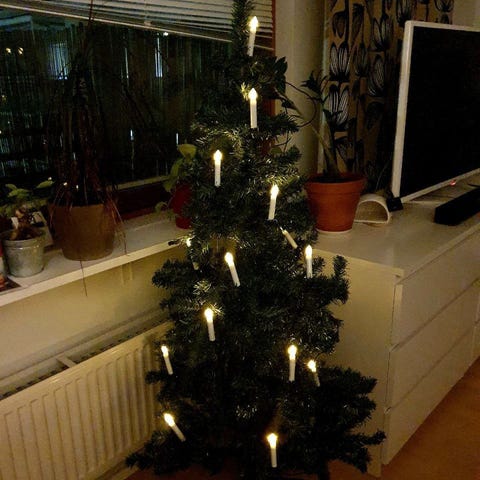 Saa kohtalaisen pieneen tilaan varastoon: runko irtoaa kolmeen osaan ja oksat on tehty metalli langasta ja saa painettua/ muotoiltua kokoon. Itse ei tosin ole saatu alkuperäiseen laatikkoon enää mahtumaan.