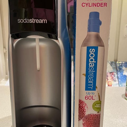 Soda stream yhdellä pullolla ja hiilidioksidisäiliöllä