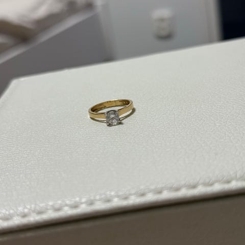 Vuonna 1912 Pohjanmaalla valmistettu vihkisormus. Leveys 5mm, halkaisija 20mm ja paksuus 1mm. Paino 2.7g