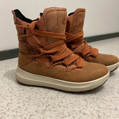 ECCO Talvikengät koko 43, väriltään ruskea. Valmistettu mokkanahasta ja sisältä pehmeällä karvavuorella. Sopii kylmiin olosuhteisiin ja tarjoaa lämpöä sekä mukavuutta talvikäyttöön.