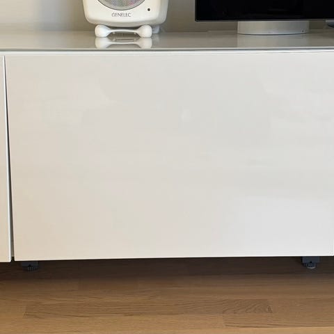 Ikean bestå tv-taso lasilevyllä. Korkeus 49cm sis. 10cm jalat. Muuten hyvässä kunnossa, mutta oikeanpuoleisen laatikon lukitusjärjestelmä toimii hieman huonosti.