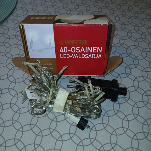 Myydään monivärinen tunnelmallinen ulkovalosarja. Sisältää sisämuuntajan ja 80 lamppua.
