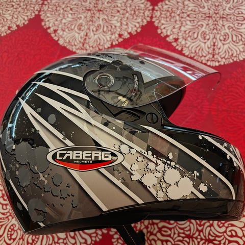 Caberg kypärä, moottoripyöräilyyn, mopoiluun tai skootterilla ajoon, jolloin tätäkin on muutaman kerran käytetty.