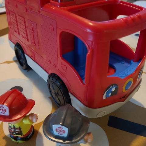 Myydään kuvan mukainen paloautolelu. Autosta kuuluu ääniä ja musiikkia, kun hahmoja kääntää niiden omilla paikoilla.
