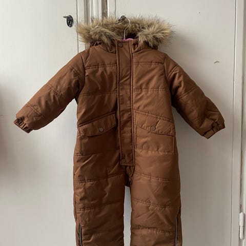 Hyväkuntoinen haalari. Ripustuslenkin kohdalta ommel auennut. Hupun karvareunus irroitettavissa kuten huppukin.
