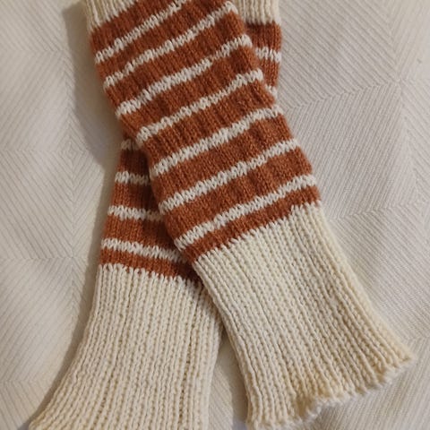 Lämpimin ajatuksin neulotut säärystimet, 40 cm. Vaalea 80% villaa, vihreät raidat pehmeää mohairlankaa 70% villaa. Hinta 18 e + postimaksu 5,50 e. Lähetän säärystimet sinulle, voit maksaa tililleni saatuasi ne.