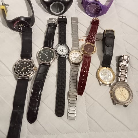 Kolme miesten rannekelloa Leijona, Fox Box Vokai, kaikki kellot hyvin toimivia