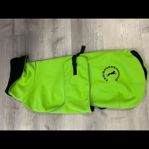 Myydään Propalttoo-takki koiralle koossa 55. Väri oranssi, joka ei näissä kuvissa näytä ihan samalta kuin livenä mutta Sporttirakin omilta sivuilta löytyy hyvät kuvat, joissa väri toistuu todenmukaisemmin. Reunoissa kulkee heijastavat tereet. Kaulus on pitkä ja sen voi kääntää kaksinkerroin eikä ole silti jäykkä. Vatsanympärystä ja kauluksen reunaa voi säätää. Musta vuori.