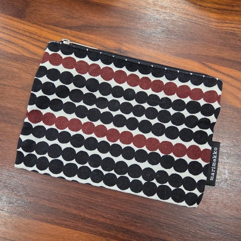 Marimekon pieni vetoketjullinen meikkipussi, n. 20x14cm. Käytetty pari kertaa, hyvässä kunnossa.