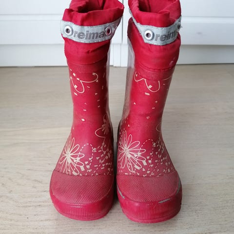 Yhdellä lapsella olleet talvikumisaappaat. Vuori 30% villaa ja 70% polesteriä. Hyväkuntoiset.