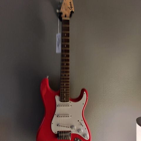 Squier Stratocaster sähkökitara punainen väri. Mukana vahvistin ja efektipedaali. Toimii hyvin.