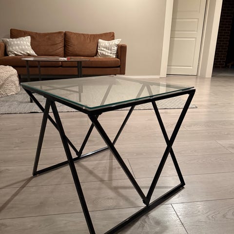Flamingo-sivupöytä, jossa lasinen levy (40cm) ja valettu metallijalka. Näyttävä ja yllättävä kaluste kotiin. Tällä hetkellä jotexilla kyseisen pöydän hinta on 319€. Nouto Turusta, läheltä urheilupuistoa.