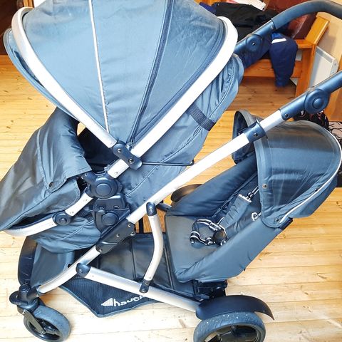 Hauckin tuplarattaat, jotka toimii myös ilman toista istuinta. Olleet käytössä mutta edelleen asiansa ajavat. Toimivat parhaiten asfaltilla tms kovalla, eivät ole hyvät maastoon. Mukaan saa vielä ala istuimeen lämpökarvan. Vikoja: työntöaisan pehmuste halki, kosmeettinen vika. Ja ylemmän kopan valjaista uupuu klipsi, saa ihan kangasliikkeistä varasosana. Nouto Salokylä tai omien menojen mukaan Joensuusta