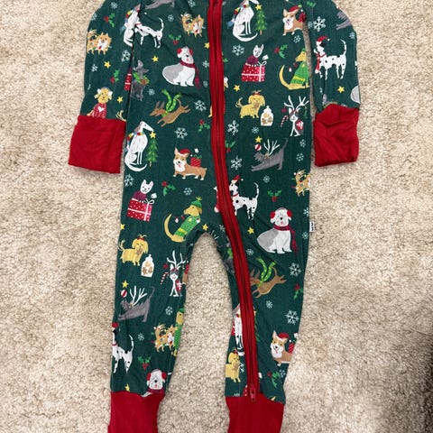 Little Sleepies bamboo yöasu vauvalle, missä hihat ja jalansuut voidaan kääntää hanskoiksi tai sukiksi. Ostettu USA:sta. Koko 6-12 months vastaa 68-80cm. Koiratalous. Väri haalistunut hieman, ei reikiä tai tahroja.