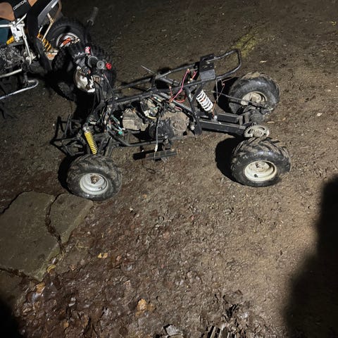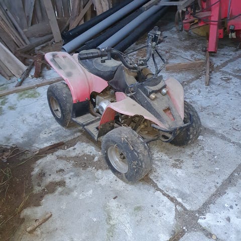 Tommonen 110cc pakillinen lasten mönkijä, ajosta jäänyt lähtee kummiski käyntiin ja muuten teknisesti ihan ok.