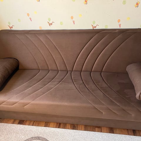 Siisti kulmasohva josta saa helposti kahdennukuttavan vuoteen. Vuodevaatteille säilytystila.