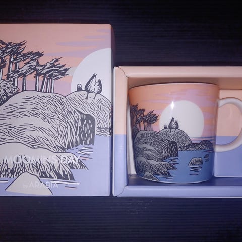 Myydään tarrallinen muumimuki muumin päivä 2018.