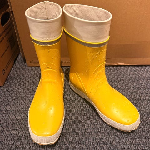 Myydään keltaiset Hai-saappaat. Väri on hieman haalistunut auringossa, mutta muuten melko vähäisellä käytöllä olleet kumpparit.