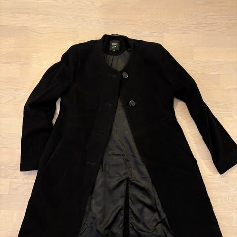 Jykevä villakangas ja sisällä silkkivuori. Ehjä ja hyvässä kunnossa. Koko merkintää ei ole, mutta arvio s / xs. Melko kapea harteista (olen itse m-kokoa).