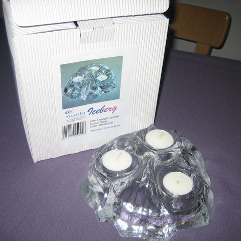Myydään lasinen jääkidetuikkula. Desing Simo Tavasti. Uusi paketissa oleva. Mukana punaiset tuikut.