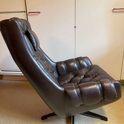 Myydään retro siisti musta pyörivä nahka lepotuoli/nojatuoli ja rahi.