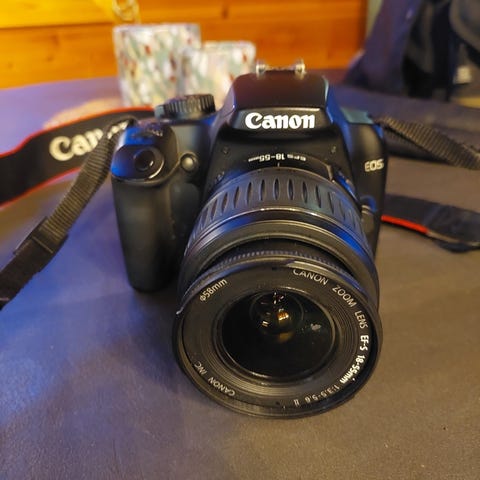 Canon EOS 1000D järjestelmäkamera ja lisävarusteet