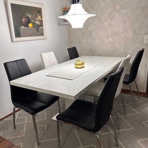 Mukana saa halutessaan 6kpl parhaat päivänsä nähneitä nahkatuoleja.