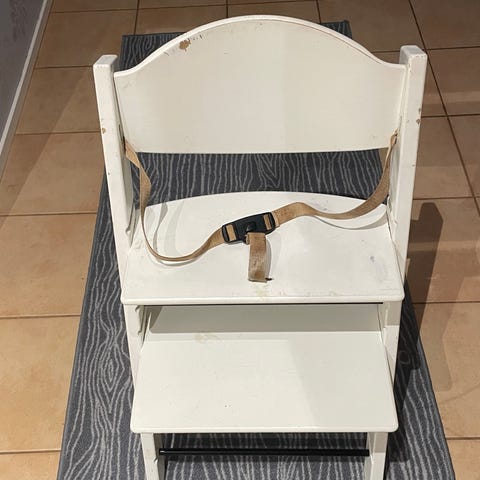Ikean syöttötuoli, mukana tarjotin ja valjaat, tarjotin osassa muovissa kulumaa (kuva)