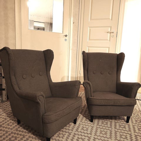 Myydään keltainen Strandmon nojatuoli (ovh 249€) sekä käyttämätön beige irtopäällinen (ovh 40€). Alkuperäisessä verhoilussa yksittäisiä tahroja (ks. kuvat). Muuten kunto moitteeton; ei kulumisen jälkiä kankaan värissä tai kunnossa. Vain nouto.