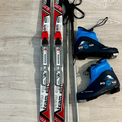 Erittäin hyväkuntoinen Suksipaketti seuraavalle hiihtäjälle.