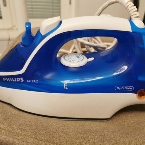Philips höyrysilitysrauta, teho 2000 wattia. Silitysraudassa on höyrytoiminto ja ergonominen muotoilu. Pala puuttuu, tästä kuva. Pohjassa käytön jälkiä, ei ole haitannut silittämistä.