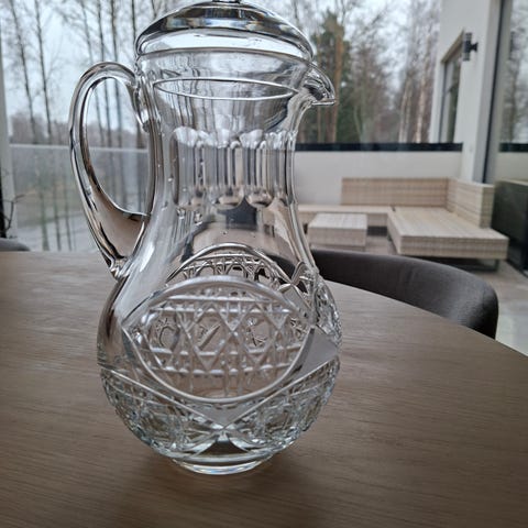 Koristeena ollut karahvi. Täydellisessä kunnossa. Vetoisuus 1L.