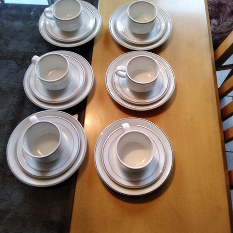 Arabia piippuleimalla varustetut Matka-Ateria sarjan MR kahvikuppi ja lautanen, valkoinen posliini, sinisellä MR- koristeella. Virheettömät. Mahdolliset toimituskulut lisätään