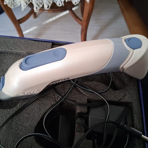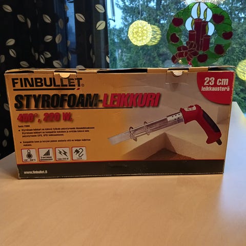 Ostettu puuilosta kesällä 2025, kuittii löytyy, takuuta jäljellä. Täysin ehjä ja uuden veroinen. Sen verran käytetty että kokeilin n. 1h ja totesin ettei sovellu mun käyttöön. Toimii varmaan paremmin styroxiin mutta Finnfoamin leikkaaminen on liian hidasta omaan makuun.