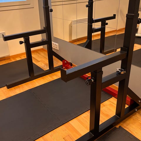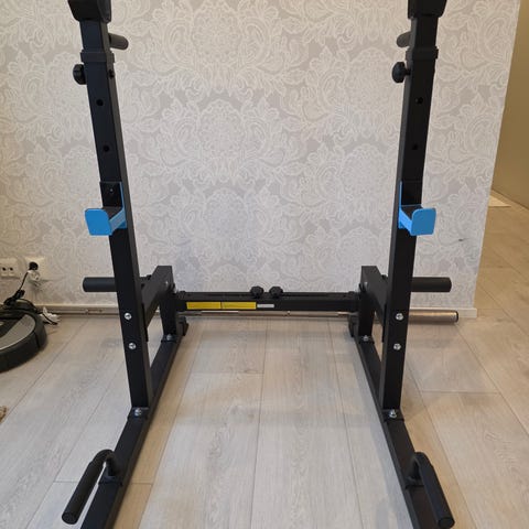 Paikat painoille ja tangolle myös alempiin koukkuihin esim. penkkipunnerrusta ajatellen.