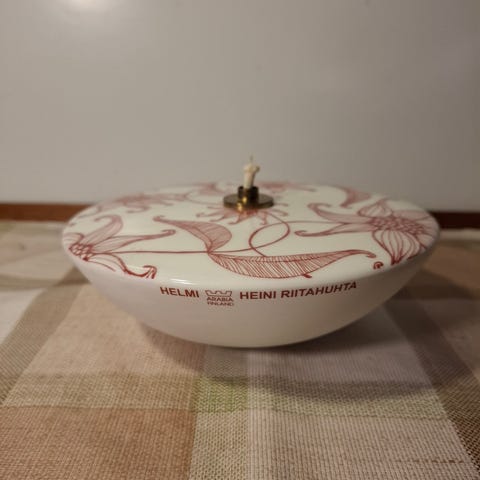 Arabian kaunis ja herkkä Helmi-öljylyhty valoksi talveen tai vaikka pukin konttiin! Suunnittelija Heini Riitahuhta. Priimakuntoinen. Keramiikkaa. Korkeus 5,5cm, halkaisija 16,5cm, paino 520 gr. Osta omaksi tai vaikka lahjaksi!
